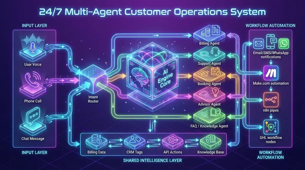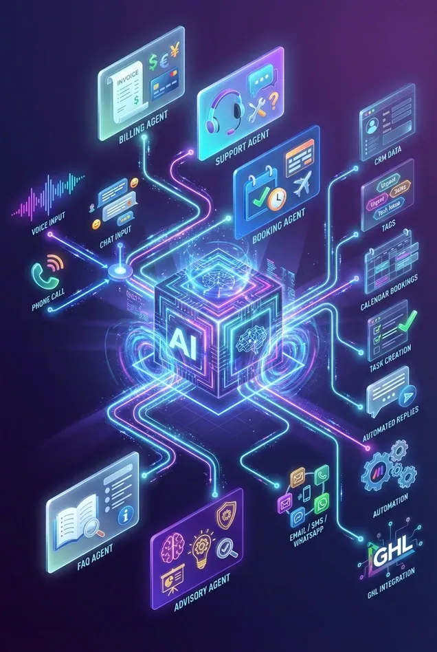 Delivered for: multi-location service businesses, companies managing 50–500+ daily calls or messages, real estate, home services, SaaS, and support-intensive teams.