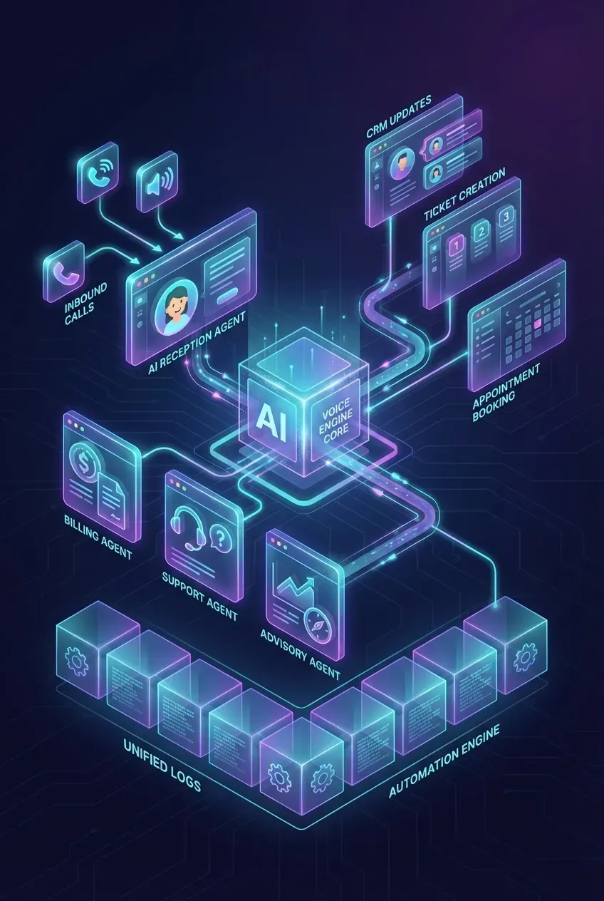 Build an autonomous, multi-agent Voice AI system capable of operating like a full internal team — instantly, consistently, 24/7.